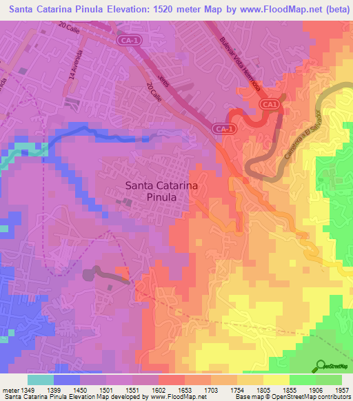 Note:Please note that Santa Catarina Pinula,Guatemala Elevation Map is in beta.