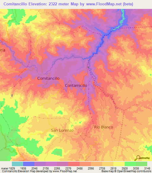 Note:Please note that Comitancillo,Guatemala Elevation Map is in beta.
