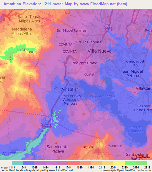 Note:Please note that Amatitlan,Guatemala Elevation Map is in beta.