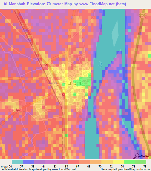 Below is the Elevation map of Al Manshah,Egypt, which displays range of elevation with different colours.