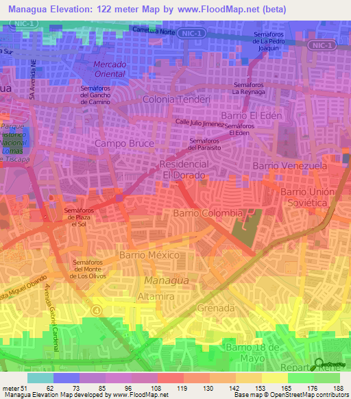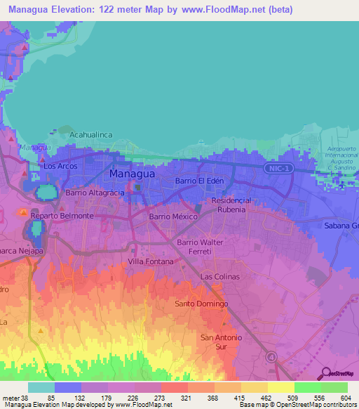 Note:Please note that Managua,Nicaragua Elevation Map is in beta.