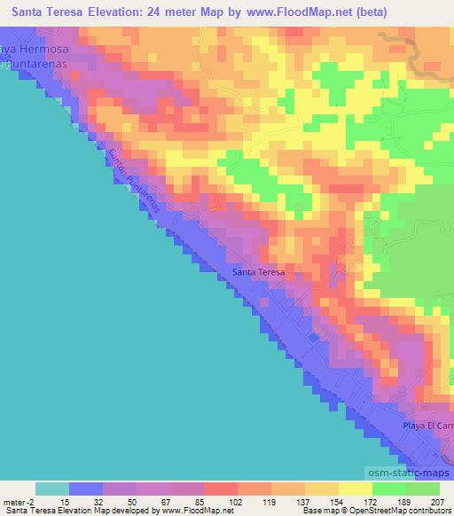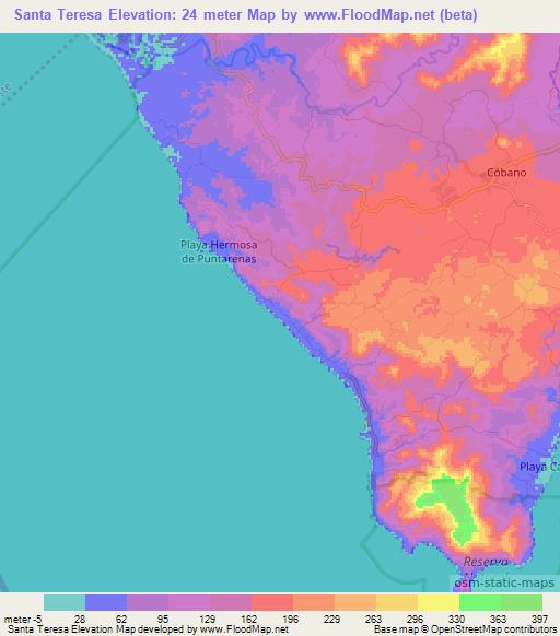 Note:Please note that Santa Teresa,Costa Rica Elevation Map is in beta.
