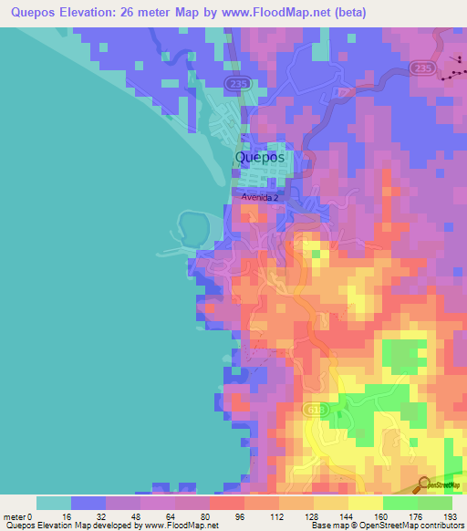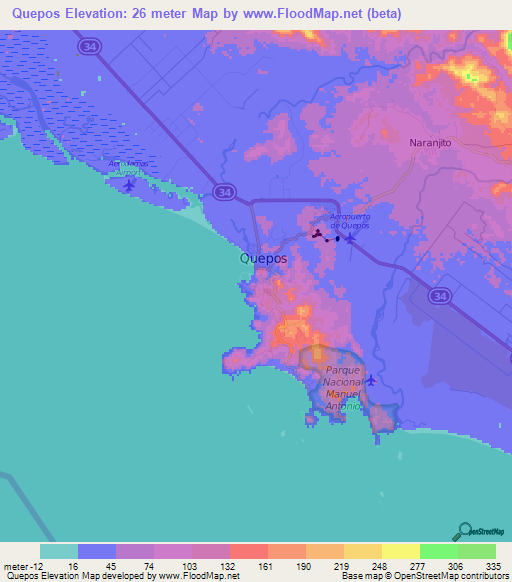 Note:Please note that Quepos,Costa Rica Elevation Map is in beta.
