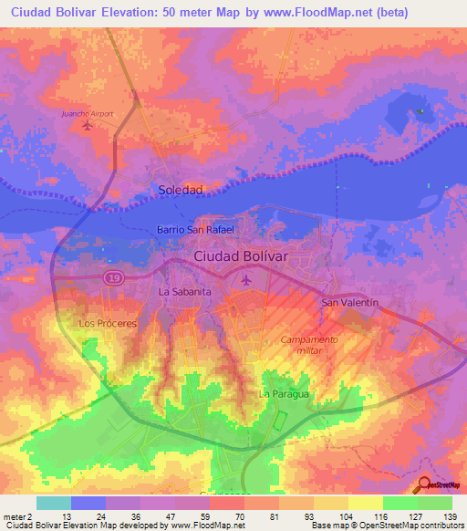 Note:Please note that Ciudad Bolivar,Venezuela Elevation Map is in beta.