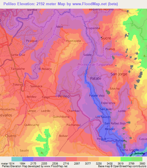 Note:Please note that Pelileo,Ecuador Elevation Map is in beta.