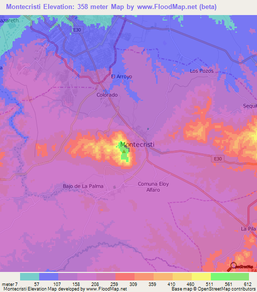 You have to give credit by linking to this Montecristi,Ecuador Elevation Map page.