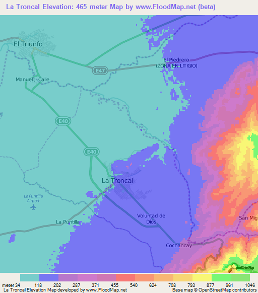 Note:Please note that La Troncal,Ecuador Elevation Map is in beta.