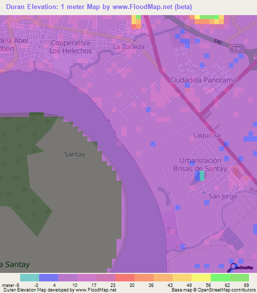 Note:Please note that Duran,Ecuador Elevation Map is in beta.