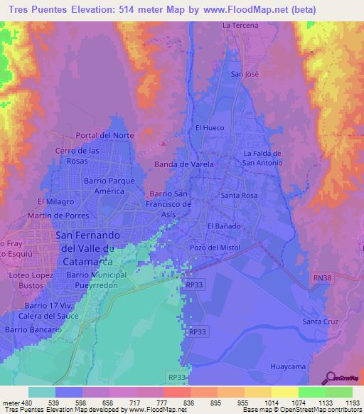 Note:Please note that Tres Puentes,Argentina Elevation Map is in beta.