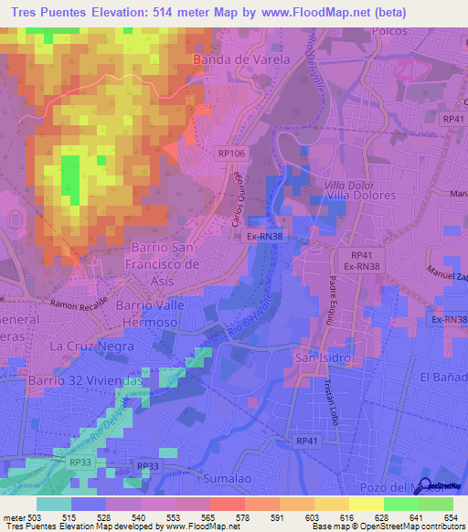 You have to give credit by linking to this Tres Puentes,Argentina Elevation Map page.