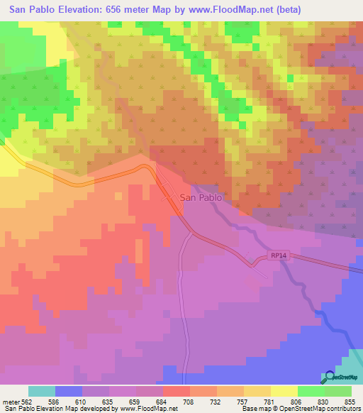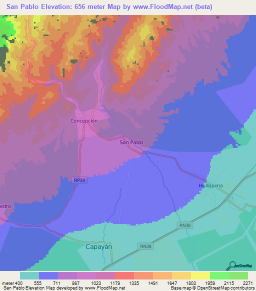 Below is the Elevation map of San Pablo,Argentina, which displays range of elevation with different colours.