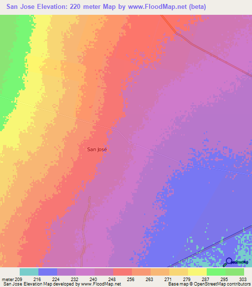 Below is the Elevation map of San Jose,Argentina, which displays range of elevation with different colours.