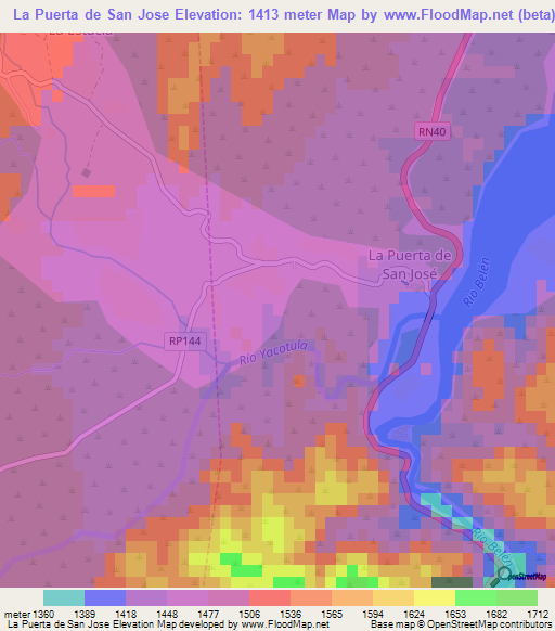 Note:Please note that La Puerta de San Jose,Argentina Elevation Map is in beta.