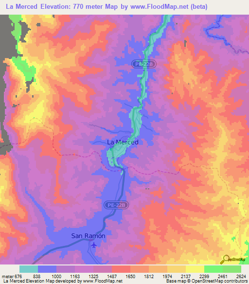Note:Please note that La Merced,Peru Elevation Map is in beta.
