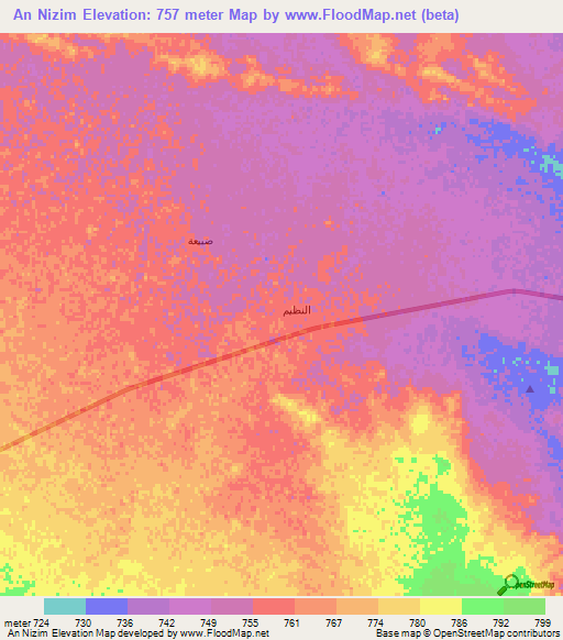 Below is the Elevation map of An Nizim,Saudi Arabia, which displays range of elevation with different colours.