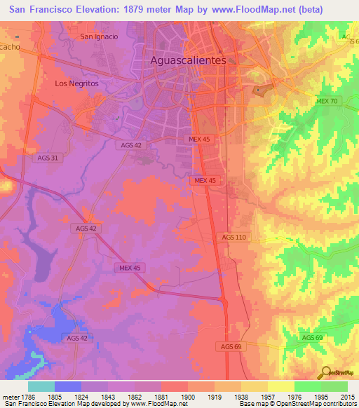 Note:Please note that San Francisco,Mexico Elevation Map is in beta.