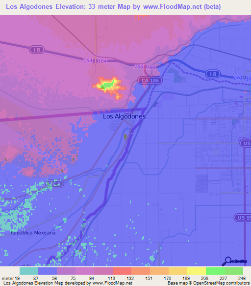 Note:Please note that Los Algodones,Mexico Elevation Map is in beta.