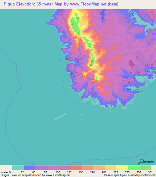 Note:Please note that Pigua,Guam Elevation Map is in beta.