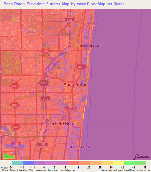 Note:Please note that Boca Raton,US Elevation Map is in beta.