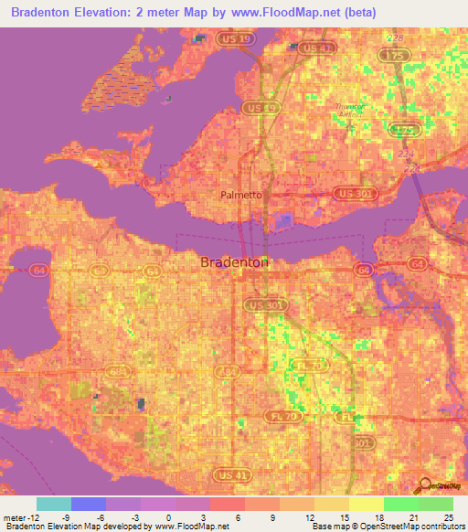 Note:Please note that Bradenton,US Elevation Map is in beta.