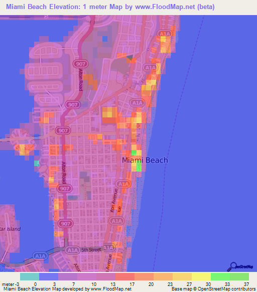 Note:Please note that Miami Beach,US Elevation Map is in beta.