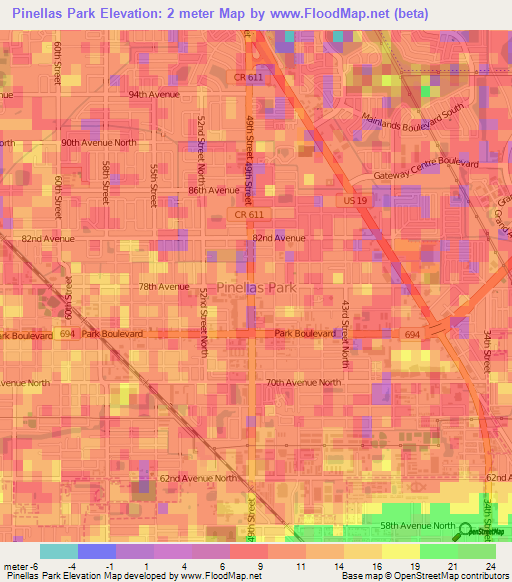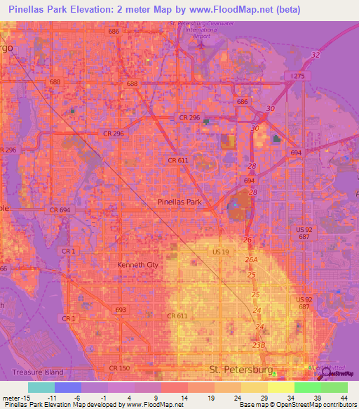 Note:Please note that Pinellas Park,US Elevation Map is in beta.