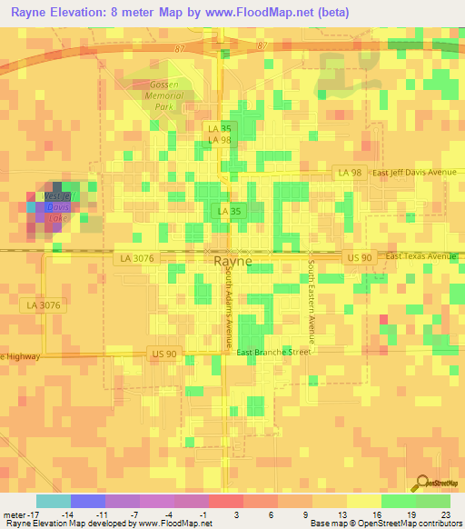 This Rayne,US Elevation Map is licensed under CC BY-SA.
