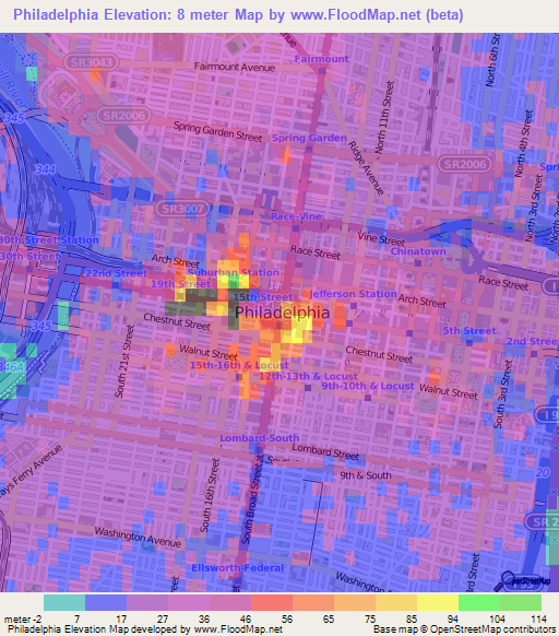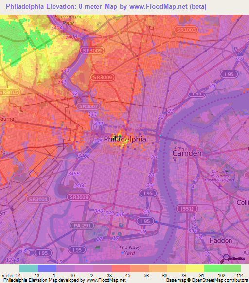 Note:Please note that Philadelphia,US Elevation Map is in beta.