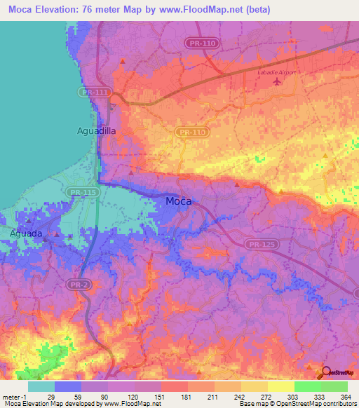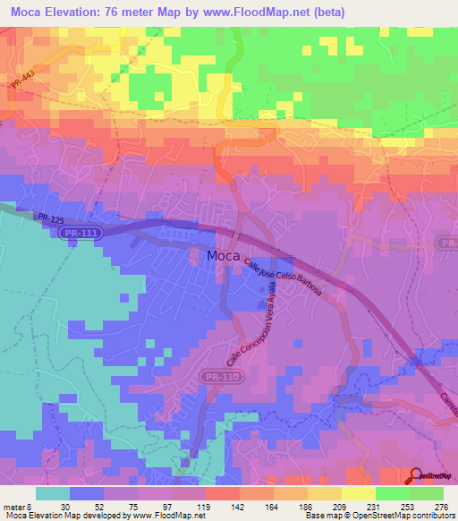 Note:Please note that Moca,Puerto Rico Elevation Map is in beta.