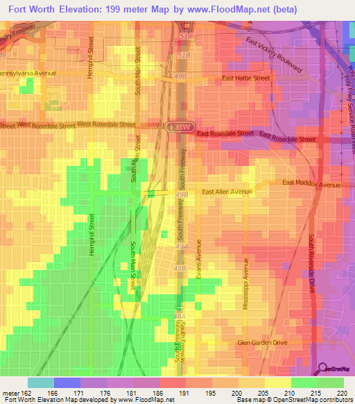 Note:Please note that Fort Worth,US Elevation Map is in beta.