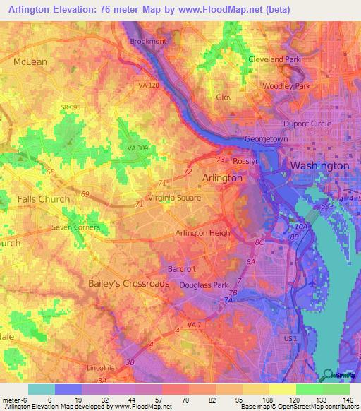 Note:Please note that Arlington,US Elevation Map is in beta.