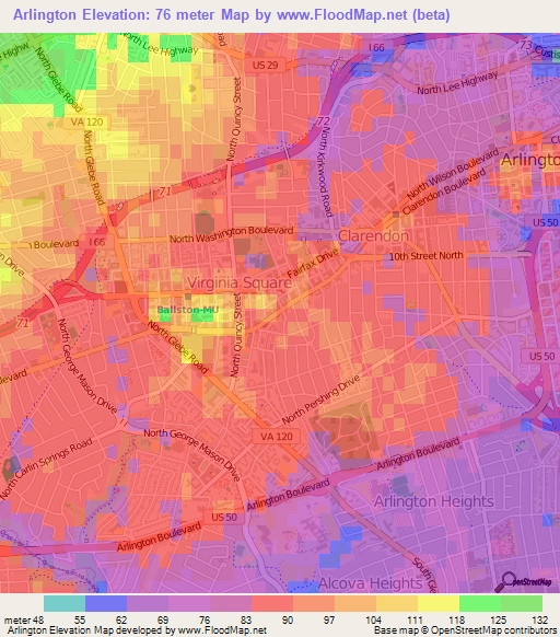 Arlington,US Elevation is 76 meter