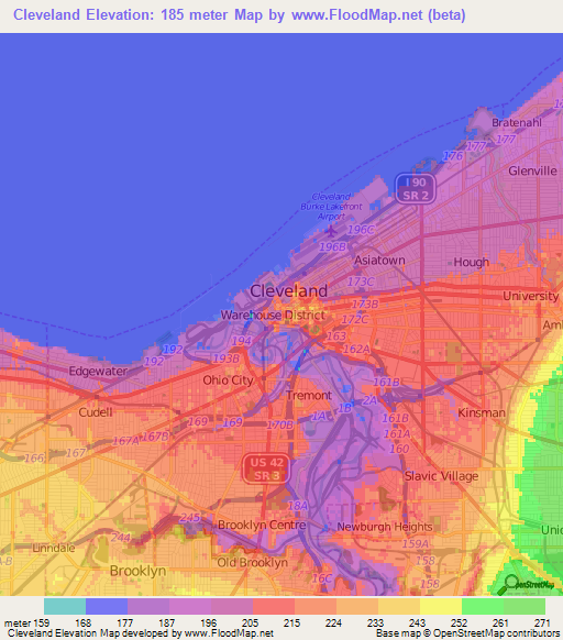 Note:Please note that Cleveland,US Elevation Map is in beta.