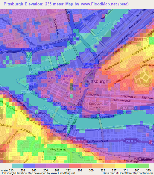 Note:Please note that Pittsburgh,US Elevation Map is in beta.