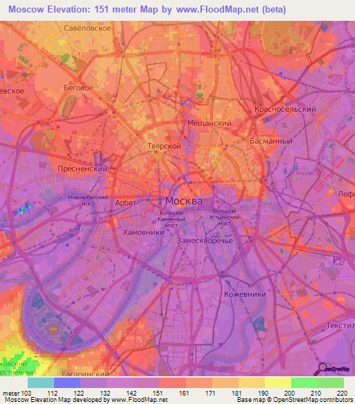 Note:Please note that Moscow,Russia Elevation Map is in beta.