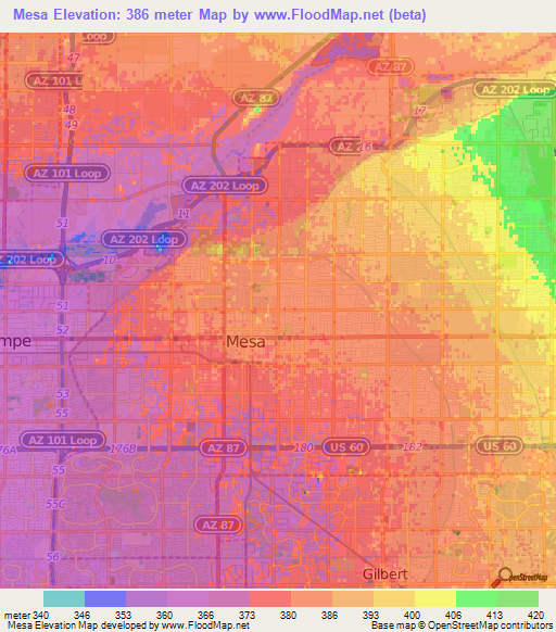Note:Please note that Mesa,US Elevation Map is in beta.