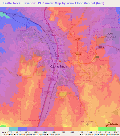 Note:Please note that Castle Rock,US Elevation Map is in beta.