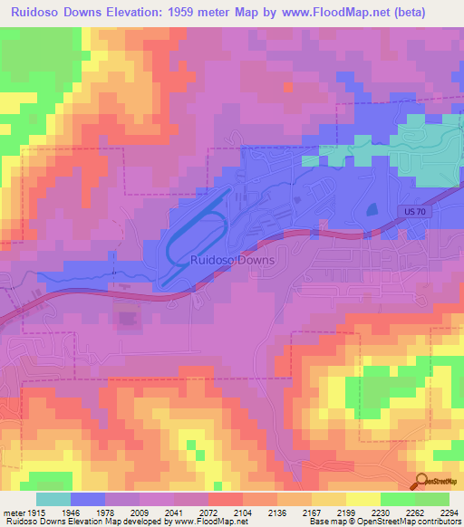 Note:Please note that Ruidoso Downs,US Elevation Map is in beta.