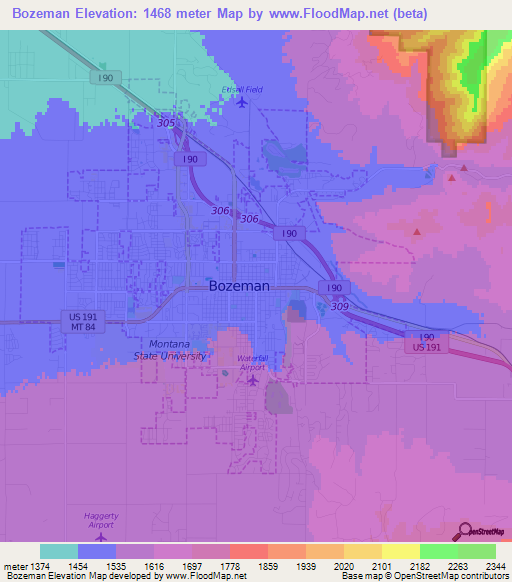 Note:Please note that Bozeman,US Elevation Map is in beta.