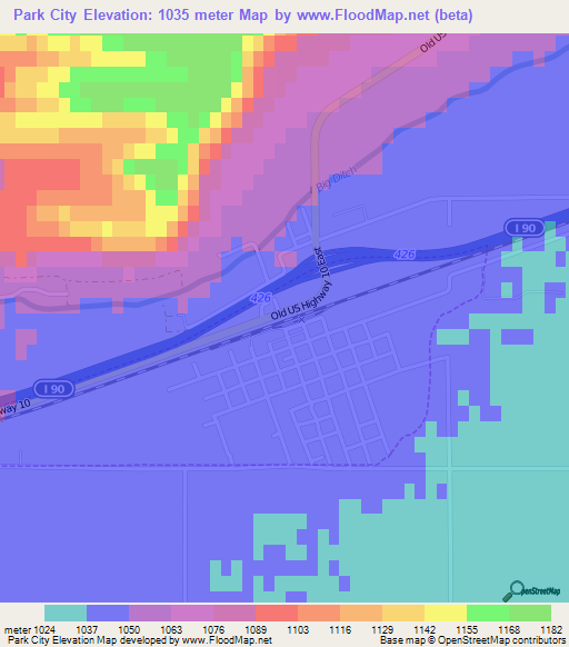 Below is the Elevation map of Park City,US, which displays range of elevation with different colours.