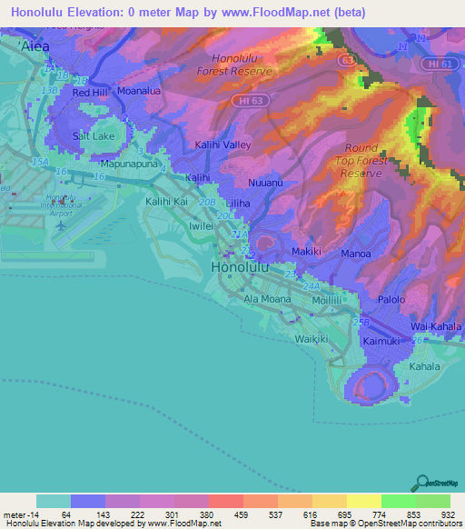 Note:Please note that Honolulu,US Elevation Map is in beta.