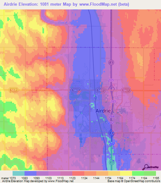 Note:Please note that Airdrie,Canada Elevation Map is in beta.