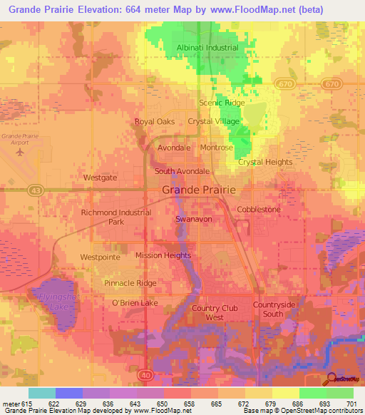 Note:Please note that Grande Prairie,Canada Elevation Map is in beta.