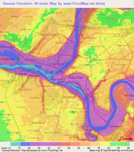 Note:Please note that Kaunas,Lithuania Elevation Map is in beta.