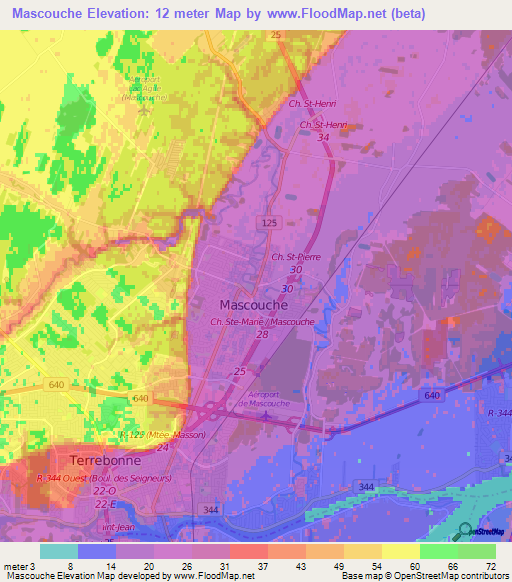 Note:Please note that Mascouche,Canada Elevation Map is in beta.