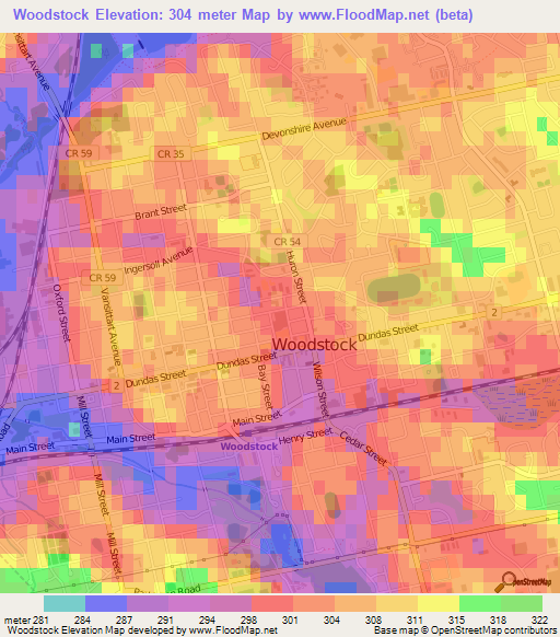 Note:Please note that Woodstock,Canada Elevation Map is in beta.