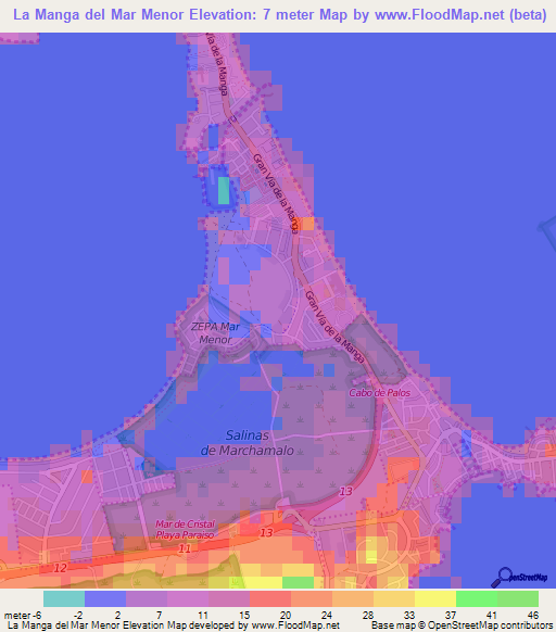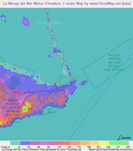 Note:Please note that La Manga del Mar Menor,Spain Elevation Map is in beta.