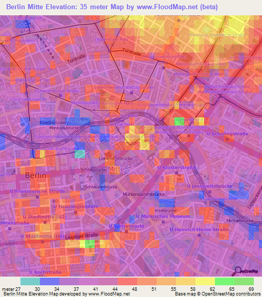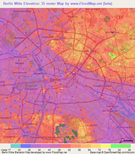 Note:Please note that Berlin Mitte,Germany Elevation Map is in beta.