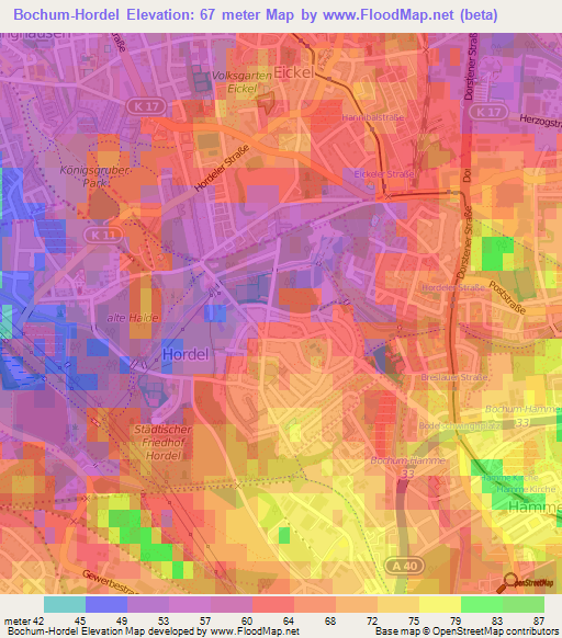Note:Please note that Bochum-Hordel,Germany Elevation Map is in beta.