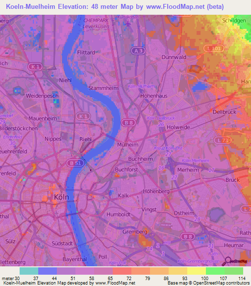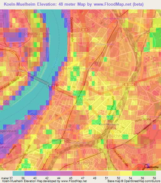 Note:Please note that Koeln-Muelheim,Germany Elevation Map is in beta.